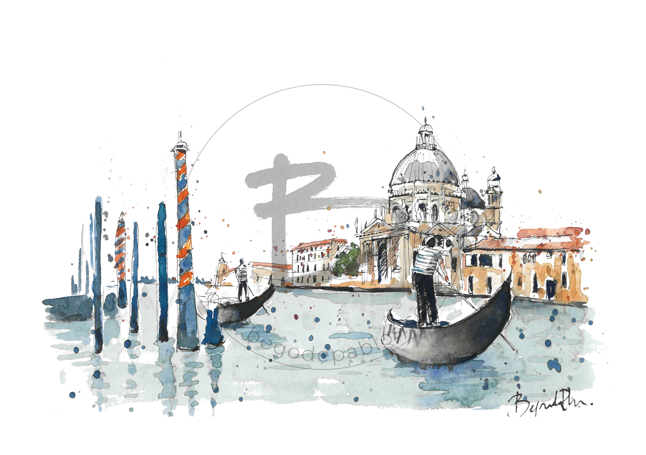 Acuarela del Gran Canal de Venezia, reproducida en papel de alta calidad.